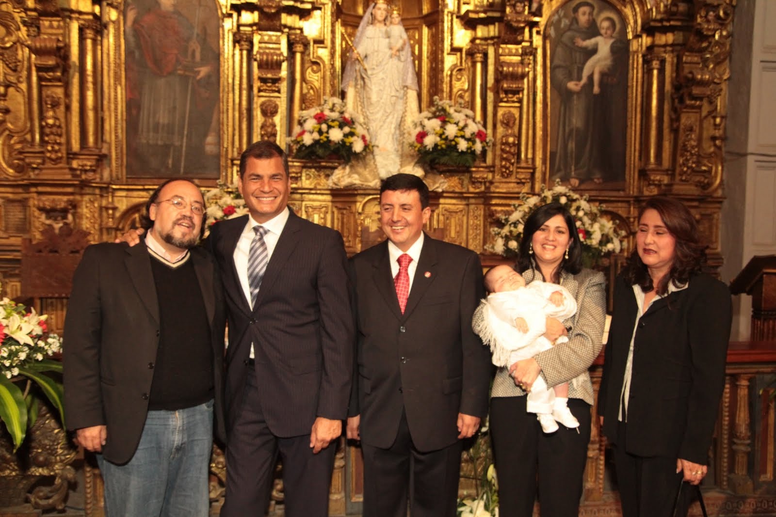 Encuentro con el Presidente Rafael Correa quién fue padrino de bautizo de Luis Ernesto, hijo de mi amigo y camarada Fabian Solano, dirigente del Partido Socialista /Frente Amplio del Ecuador en el Convento de San Francisco el viernes 21 de Enero de 2011 en Quito, Ecuador.